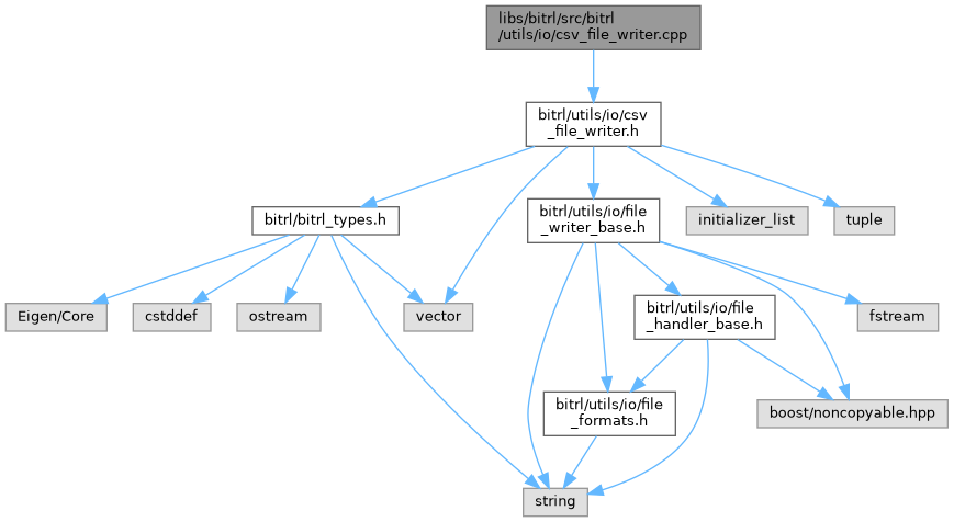 Include dependency graph for csv_file_writer.cpp:
